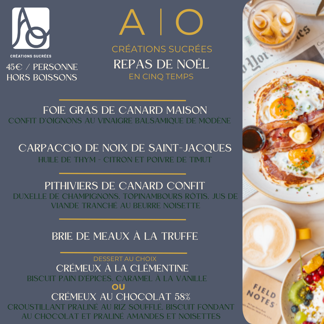 La carte du Brunch change tous les mois et le menu BRUNCH enfant aussi !